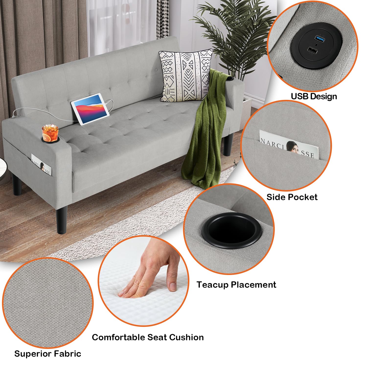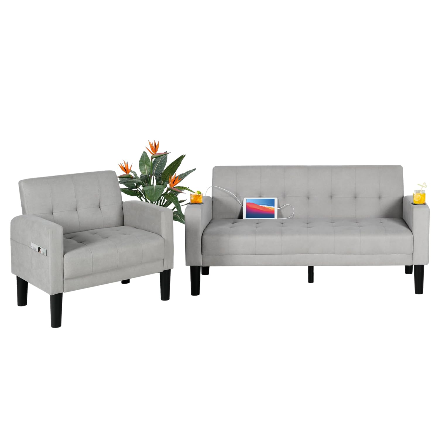 AILEEKISS 2 Piece Living Room Sofa Set includes a 2-seat sofa and a 1-seat companion in light grey fabric. The modular sectional features a pull-point design, blending contemporary styling with practical details for living rooms, apartments, offices, or bedrooms.