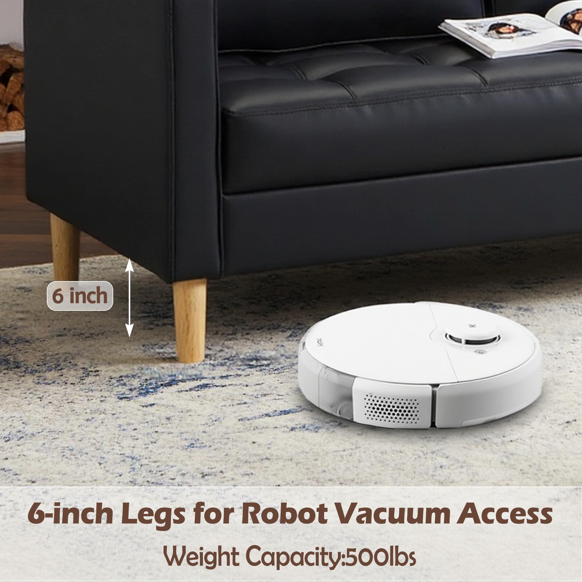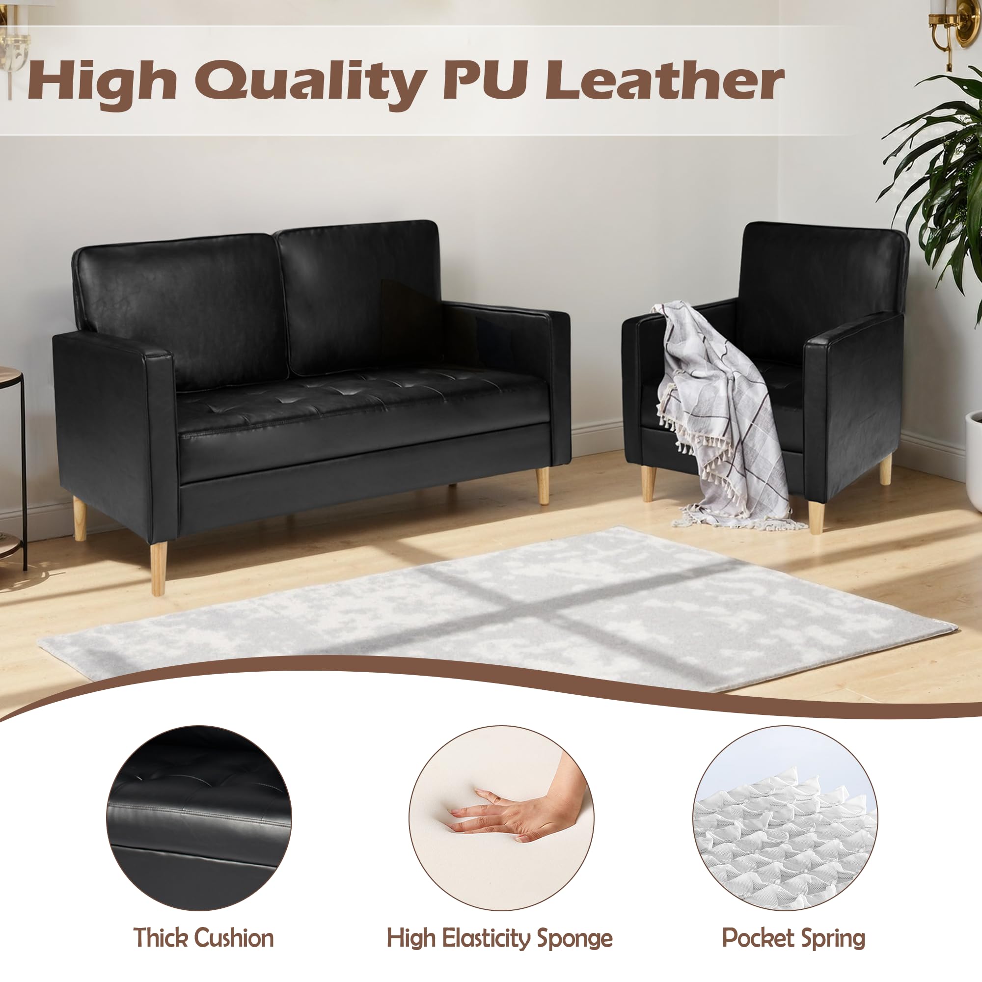 The AILEEKISS Mid-Century Sectional Sofa Set consists of a 1-Seater and a 2-Seater in black faux leather for small-space living areas. Suitable for living rooms, bedrooms, offices, or shops, it offers practical seating with easy maintenance.