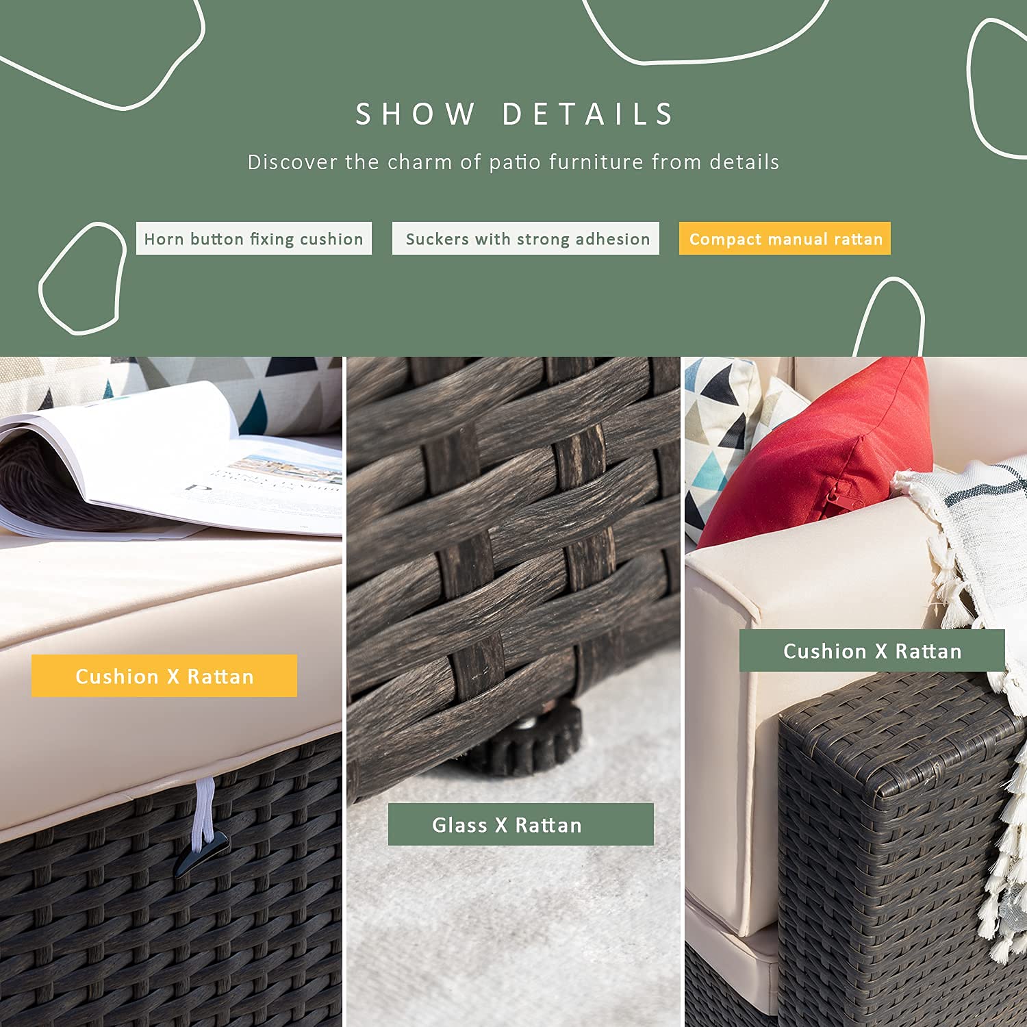 Materials: Solid frame, weather-resistant PE wicker; cushions are thickened for durability and comfort.
